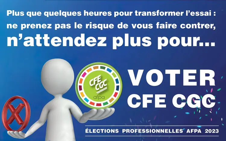 S'abstenir c'est laissé le champ libre à tous ceux qui veulent la fin de l'AFPA. S'abstenir c'est fermer les yeux sur le démantèlement des accords qui nous régissent. Ne vous abstenez pas, votez !!! Votez et faites voter avant le 4/12 avant 15h, après il sera trop tard , l'abstention aura gagné, et les salariés de l'AFPA auront perdu.